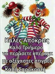 Εύχομαι σε όλους να περάσετε καλά να σας ευχηθώ Καλό Τριήμερο και Καλή Σαρακοστή με υγεία, ευτυχία, χαρά, αισιοδοξία και ευεξία και το πιο σημαντικό να είμαστε ευτυχισμένοι και να έχουμε ευημερία και να δίνουμε στον κόσμο το καλό παράδειγμα και το πόσο καλή είμαστε με το μέσα μας. ΚΑΛΕΣ ΑΠΌΚΡΙΕΣ!!! Ο Μαθητής Πέτρος Φλώρος της Γ τάξη.